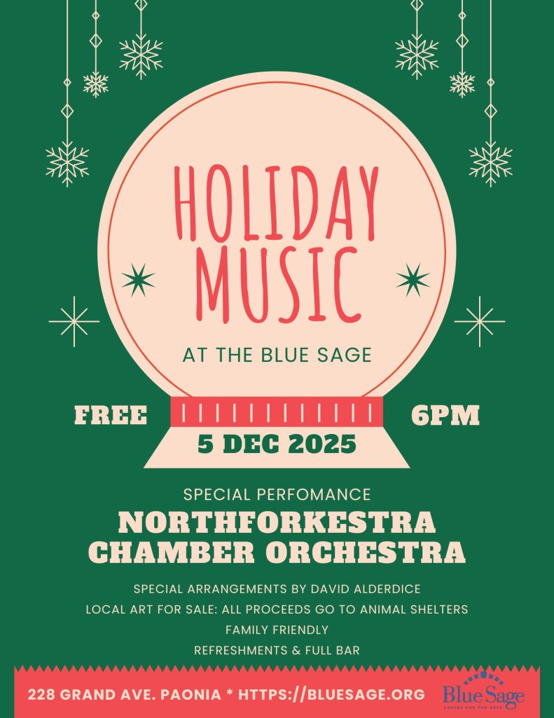 Join us December 5th at 6pm for a concert with Northforkestra! Special arrangements by David Alderdice. Local art will be for sale with all proceeds going to animal shelters. Family friendly, free event! Refreshments and full bar will be available. |